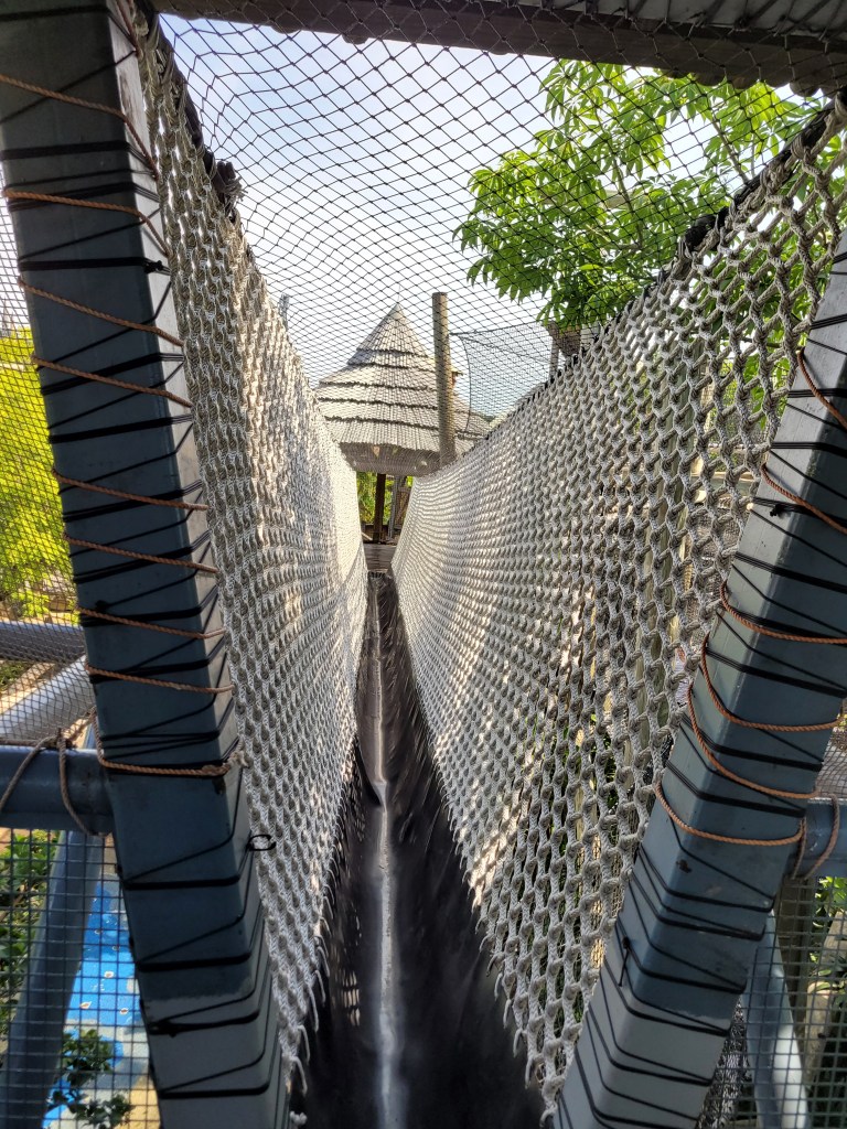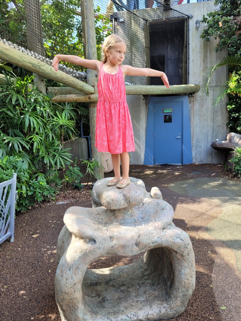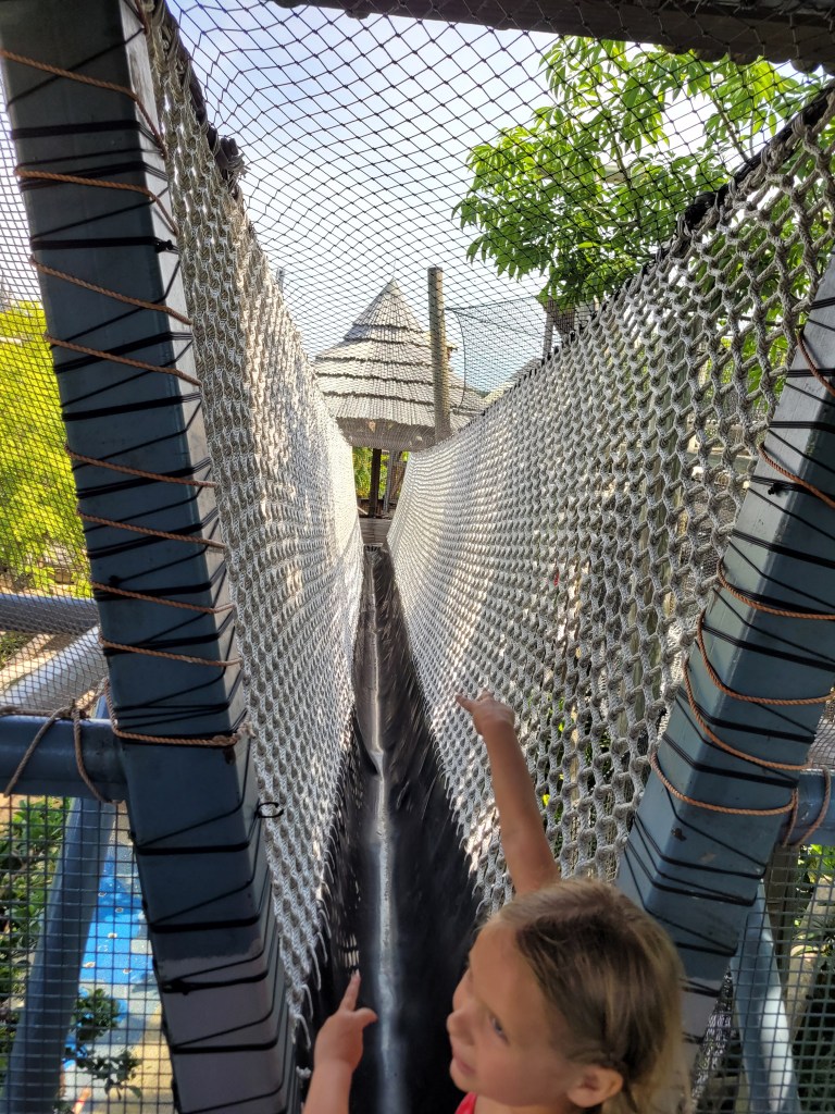 Maddie was hungry when we arrived, so we got green eggs and ham again 😋 we also rode ‘one fish, two fish, red fish, blue fish’ and the ‘High in the Sky Suess Trolley Ride’ while we were in Suess Landing 😃. We also rode flight of the hippogriff in Hogsmeade before we went back to Jurassic Park to check out the wait time for pteranodon flyers (it was over an hour at that time and we had express passes for a bunch of other rides). We went back to Camp Jurassic and Maddie played for a while in the refurbished play area.
