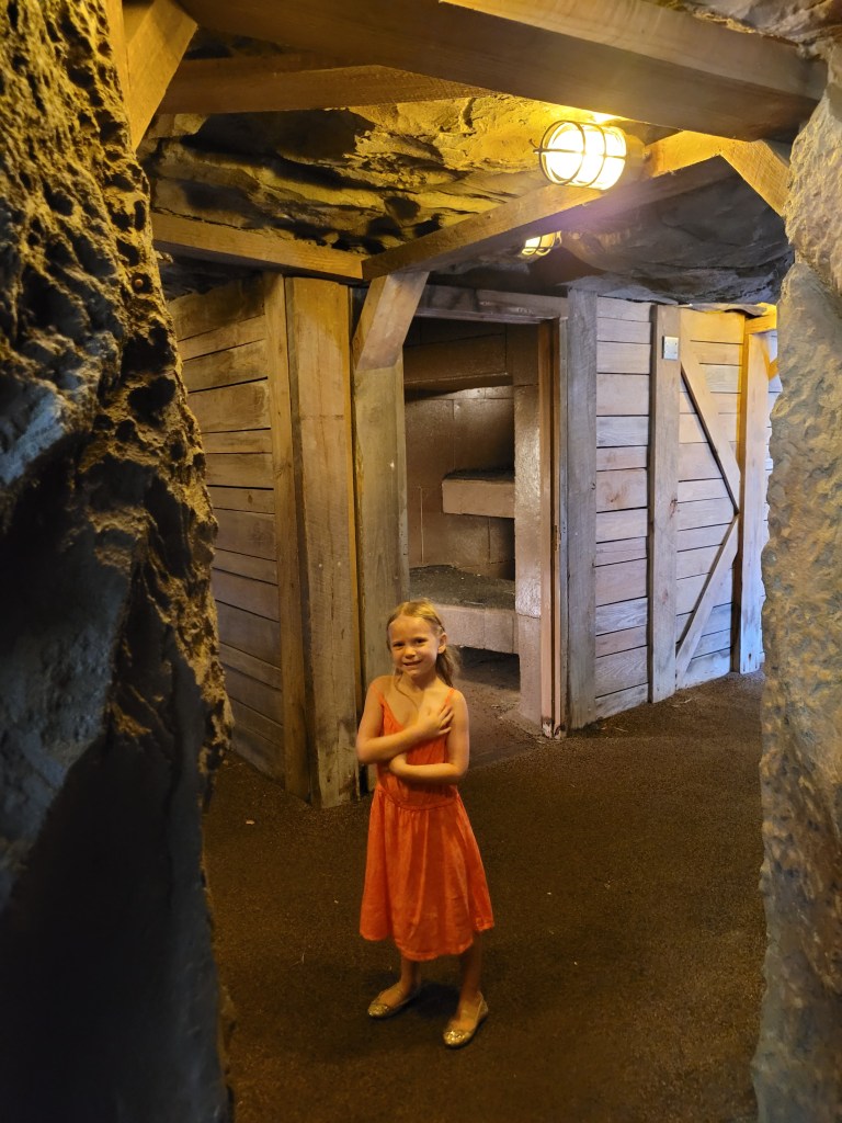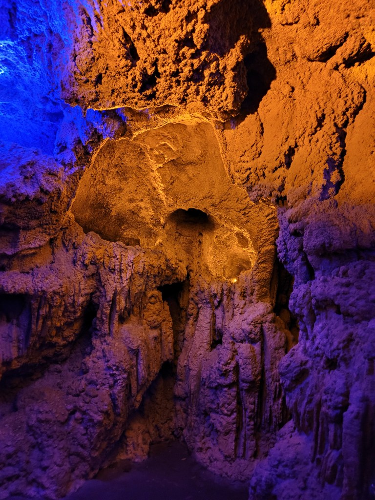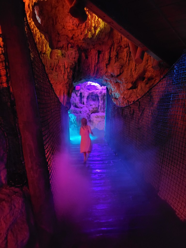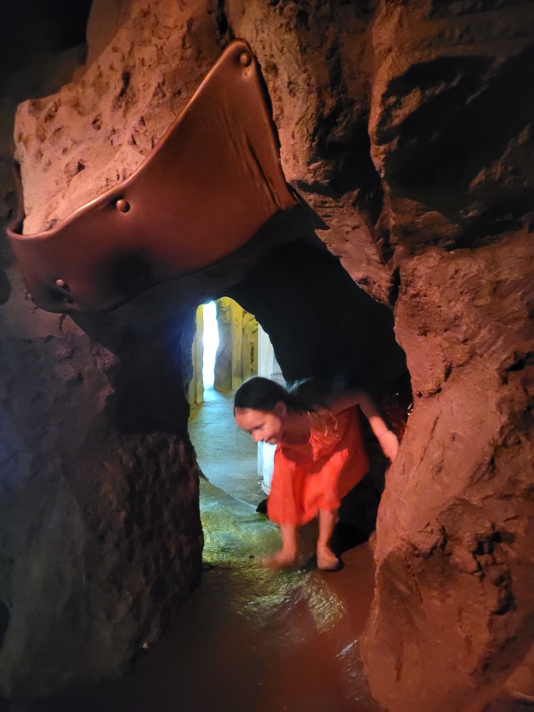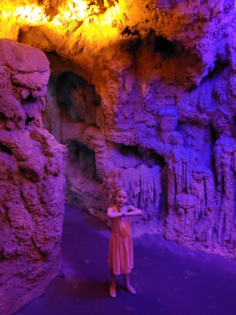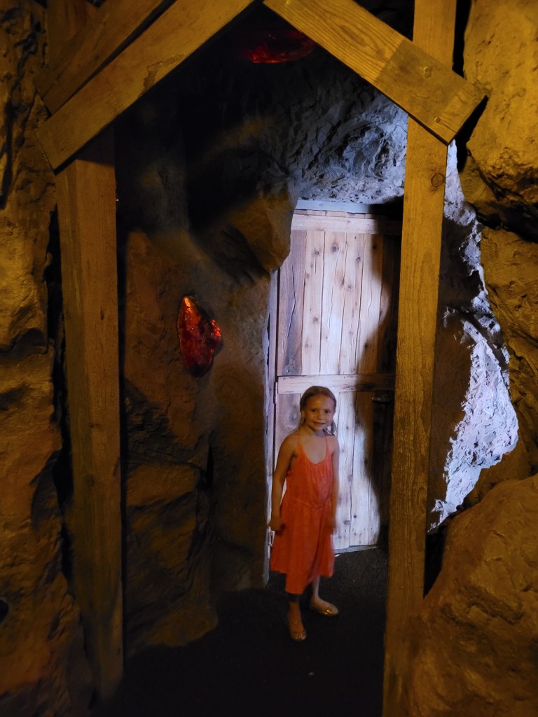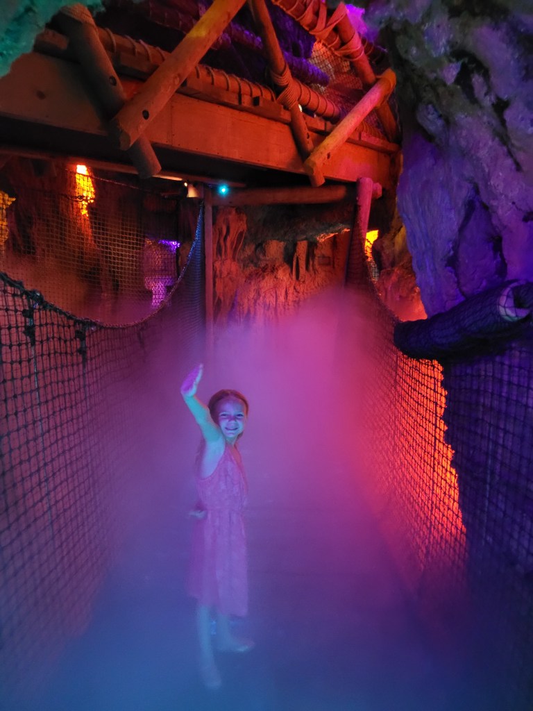 Next up was Jurassic Park (my personal favorite that is tied with Harry Potter 😃) where we went on Jurassic Park River Adventure. Maddie has been on this before, and she seemed to enjoy it in the past, but on this day… she did not enjoy it… at all 😓😤 she stated she never wanted to ride it again as we got off 🤷♀️( sad day for me if I want to ride it again while I’m with her). We then headed to Camp Jurassic where we finally experienced the amber caves!!!