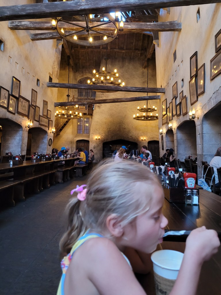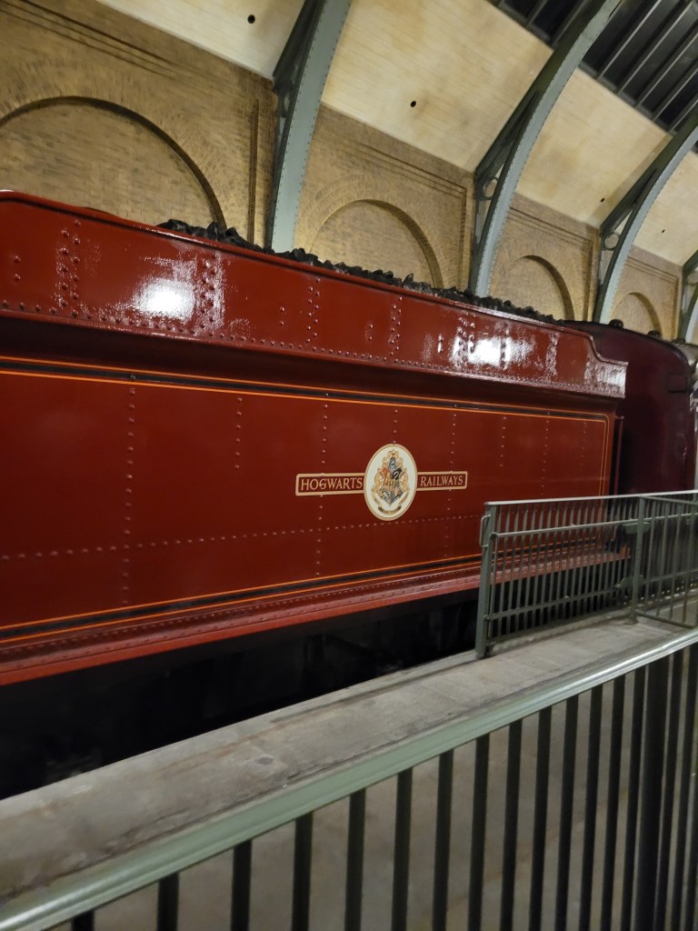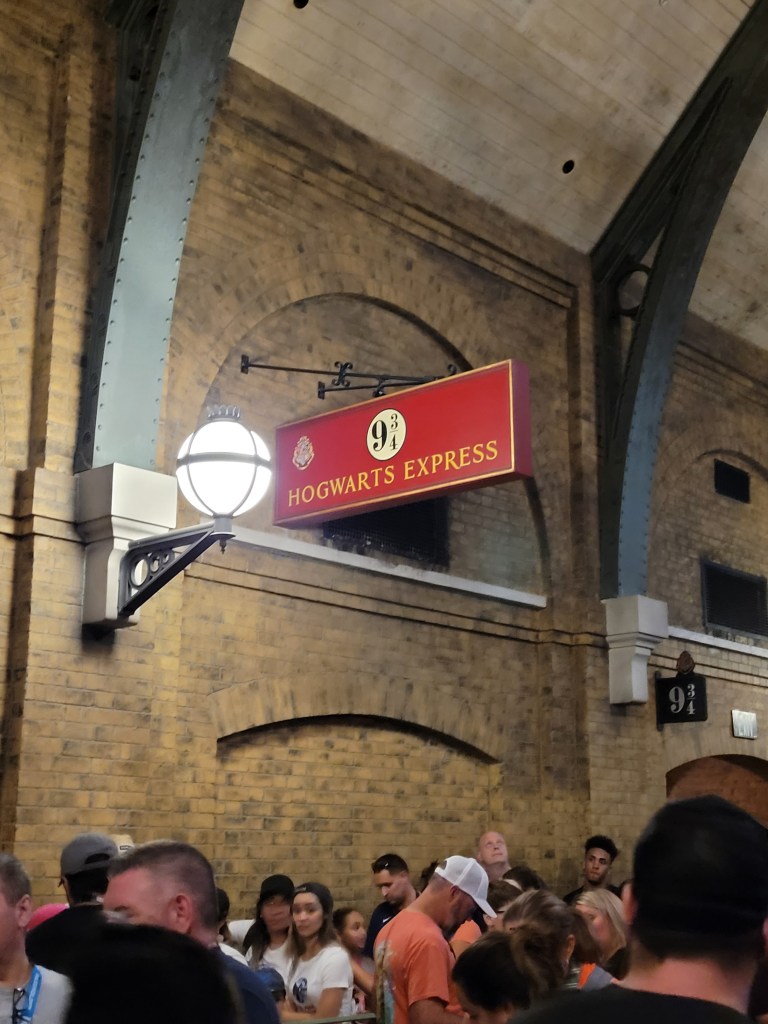 We decided to have dinner at the Leakey Cauldron in Diagon Alley, so we hopped on the Hogwarts Express to get us over to Kings Cross Station 😃. We had fish n chips, mac n cheese, a hot butter beer and I tried the Dragonscale brew. It was all delicious!