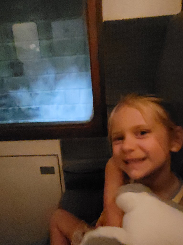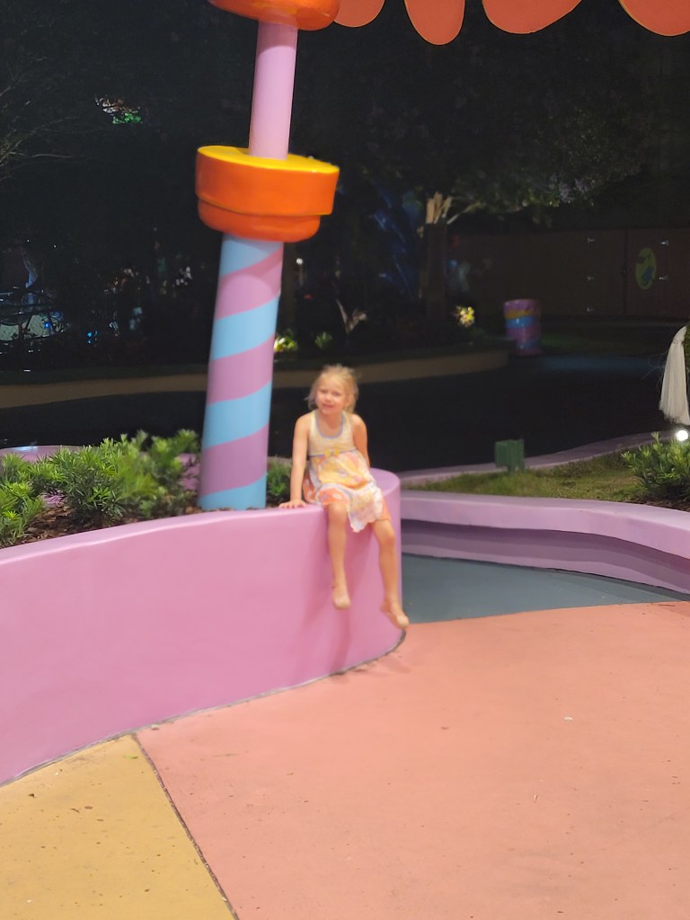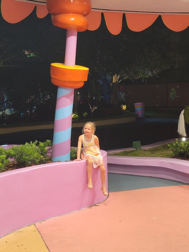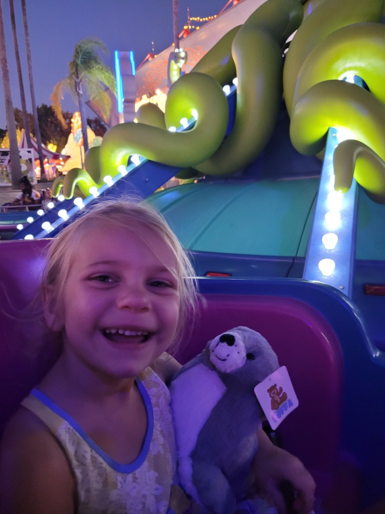 I tried to convince Maddie to go on ‘Men in Black’ with me, but she wasn’t having it. We went over to Springfield where we rode Kang and Kodos, then played a few games where she won a seal 😃
