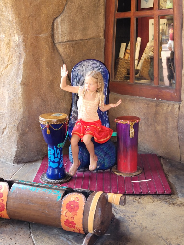 Our room was ready around 1500 and we were both pretty hungry by then. I grabbed our stuff from the car and brought it to the room, then we got some food. I thought for sure Maddie would nap since we were up early… but she didn’t 🤷♀️ so we went back to Islands of Adventure for the evening 😍