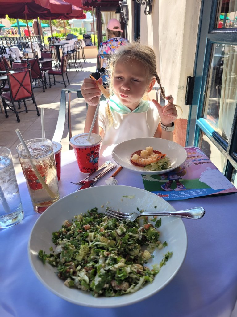 I quickly remembered why I prefer this park in the evening because there is very little shade and it’s still very much summer down here ๐ฅต After seeking out the new loungefly for our friend, we decided to check the walk up wait list for Brown Derby Lounge. We got lucky with a 5 minute wait! We were able to eat at the Brown Derby for the first time without an advanced reservation! I ordered the Cobb Salad and Maddie had the Shrimp Cocktail. Both were absolutely delicious ๐๐๐คค
