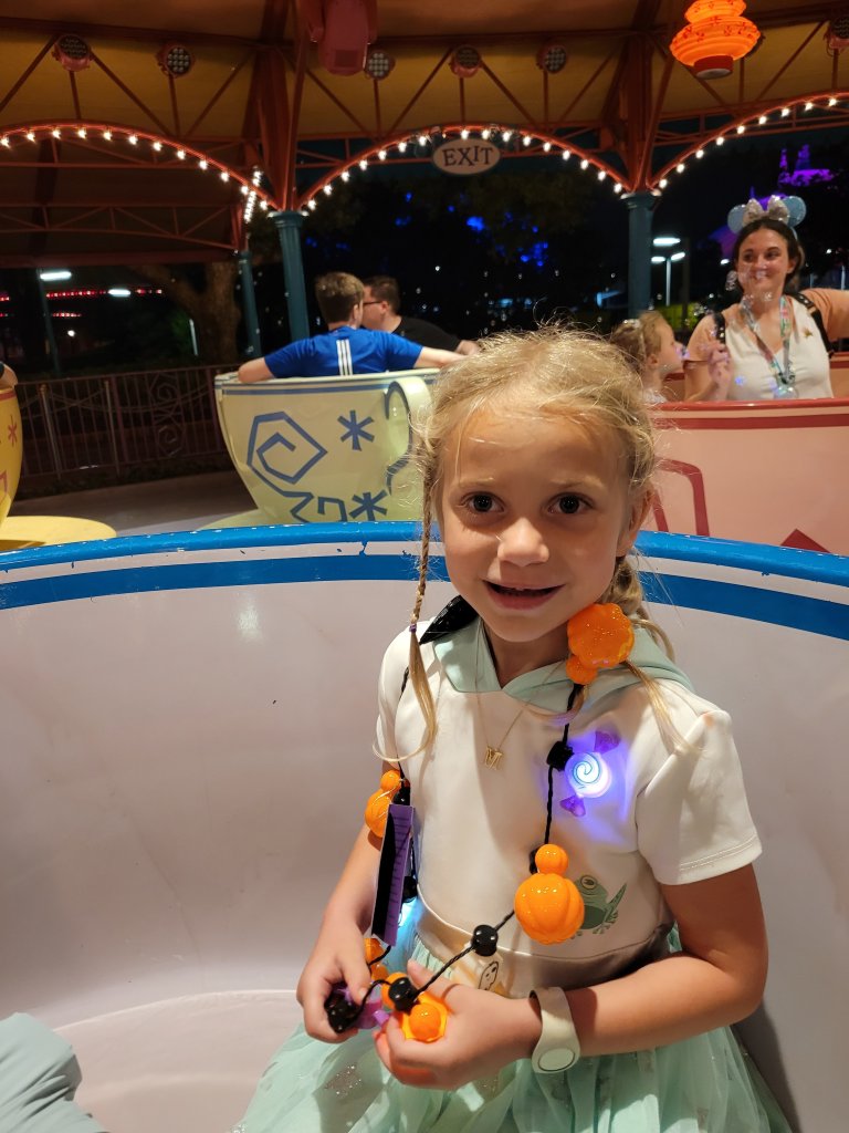 We got to ride Pirates of the Caribbean, Big Thunder Mountain, Seven Dwarfs Mine Train and The Mad Tea Party! We also did a little shopping, got some food from Columbia Harbor House, watched fireworks and went to see if they still had the Alien slushie and candy corn ice cream at Auntie Gravity’s (they didn’t have either ๐ค) so Maddie got an ice cream cone.